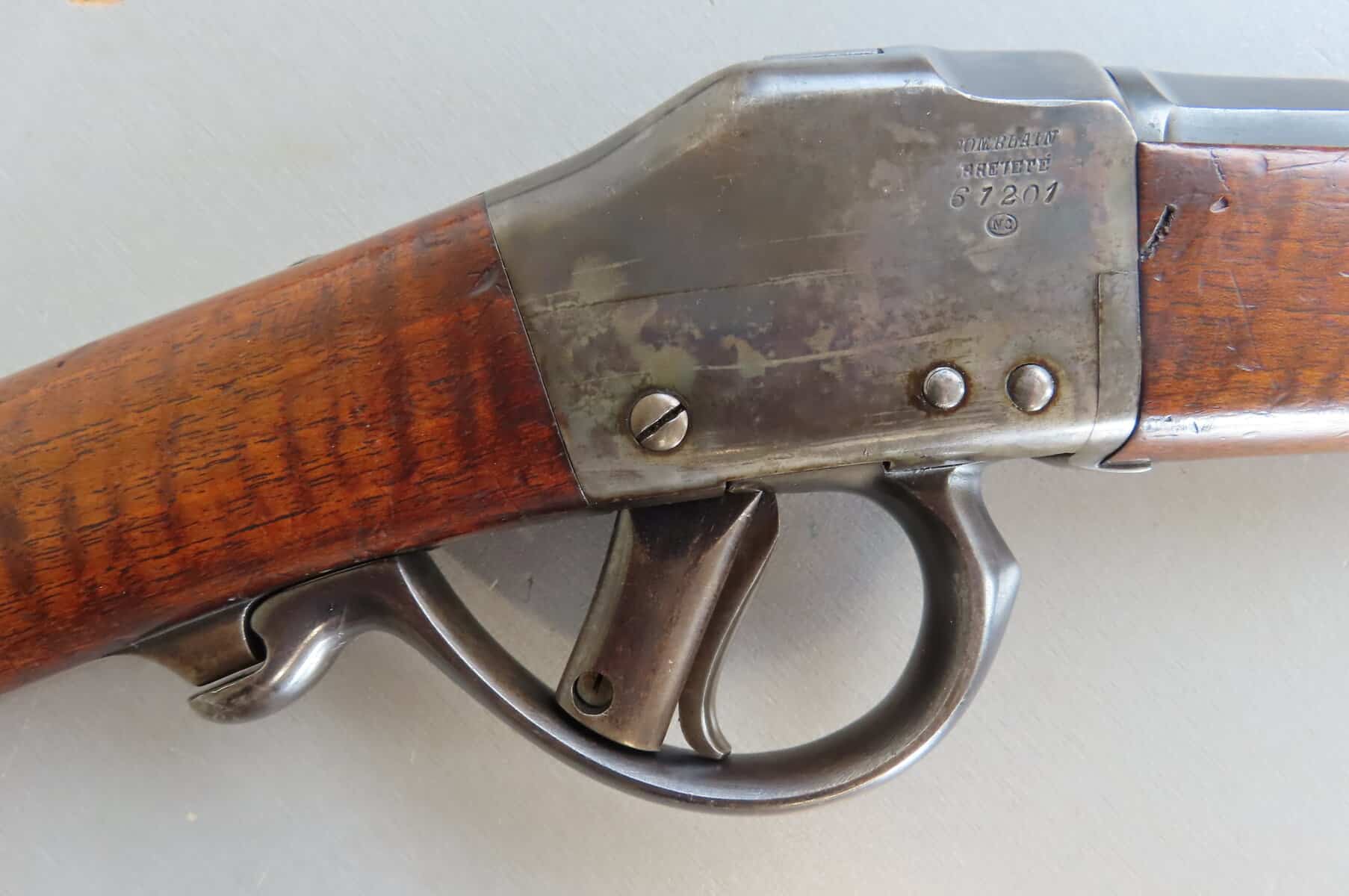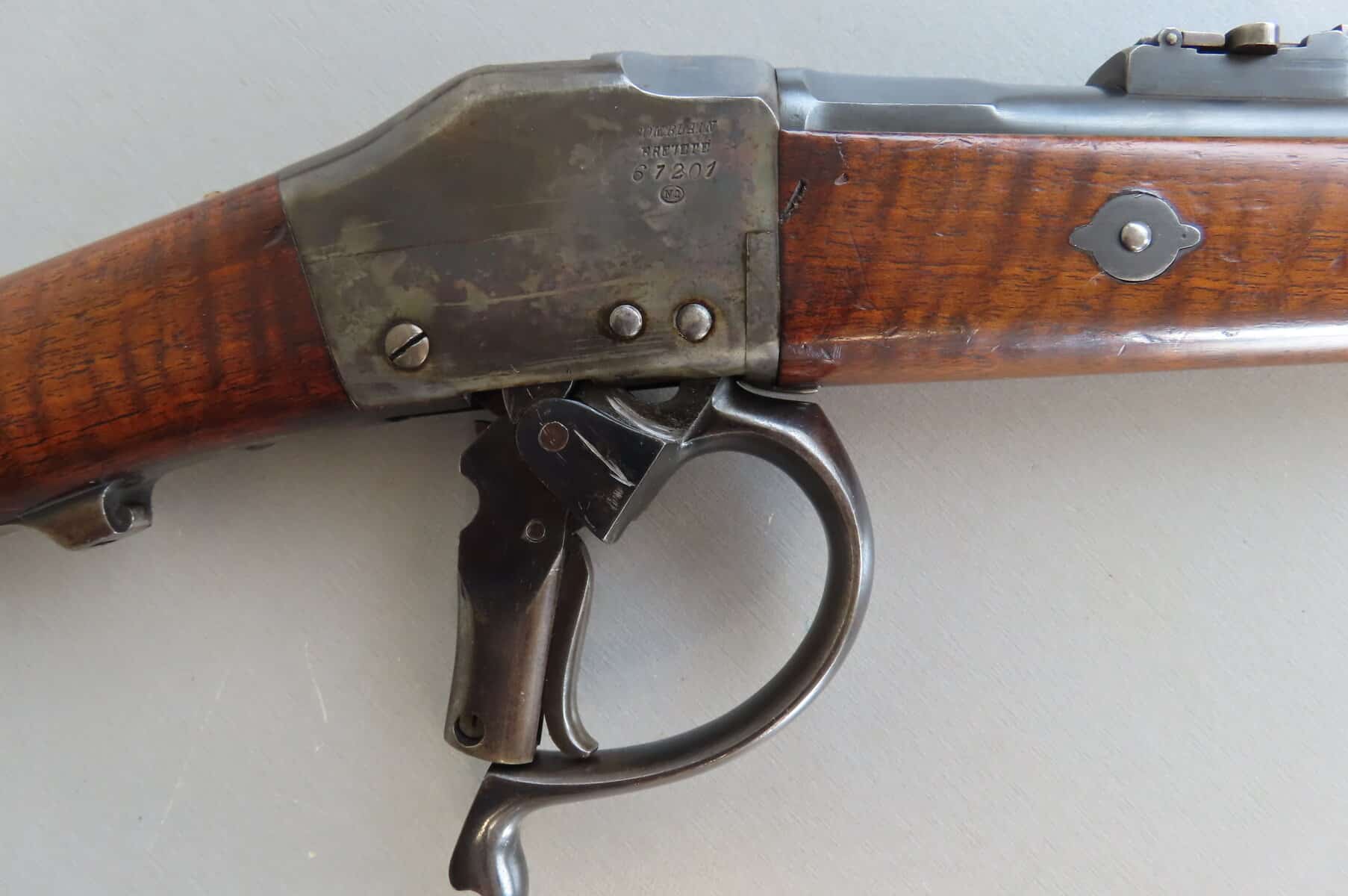 This gun is in really nice condition with most original blue and case hardening remaining while the wood is excellent with hardly a mark. The bore is nice and shiny and still very usable