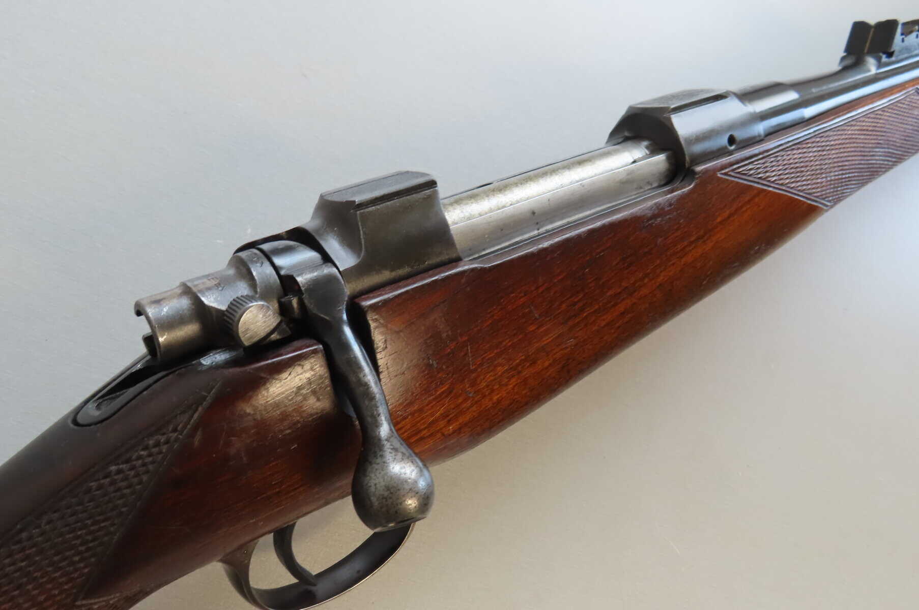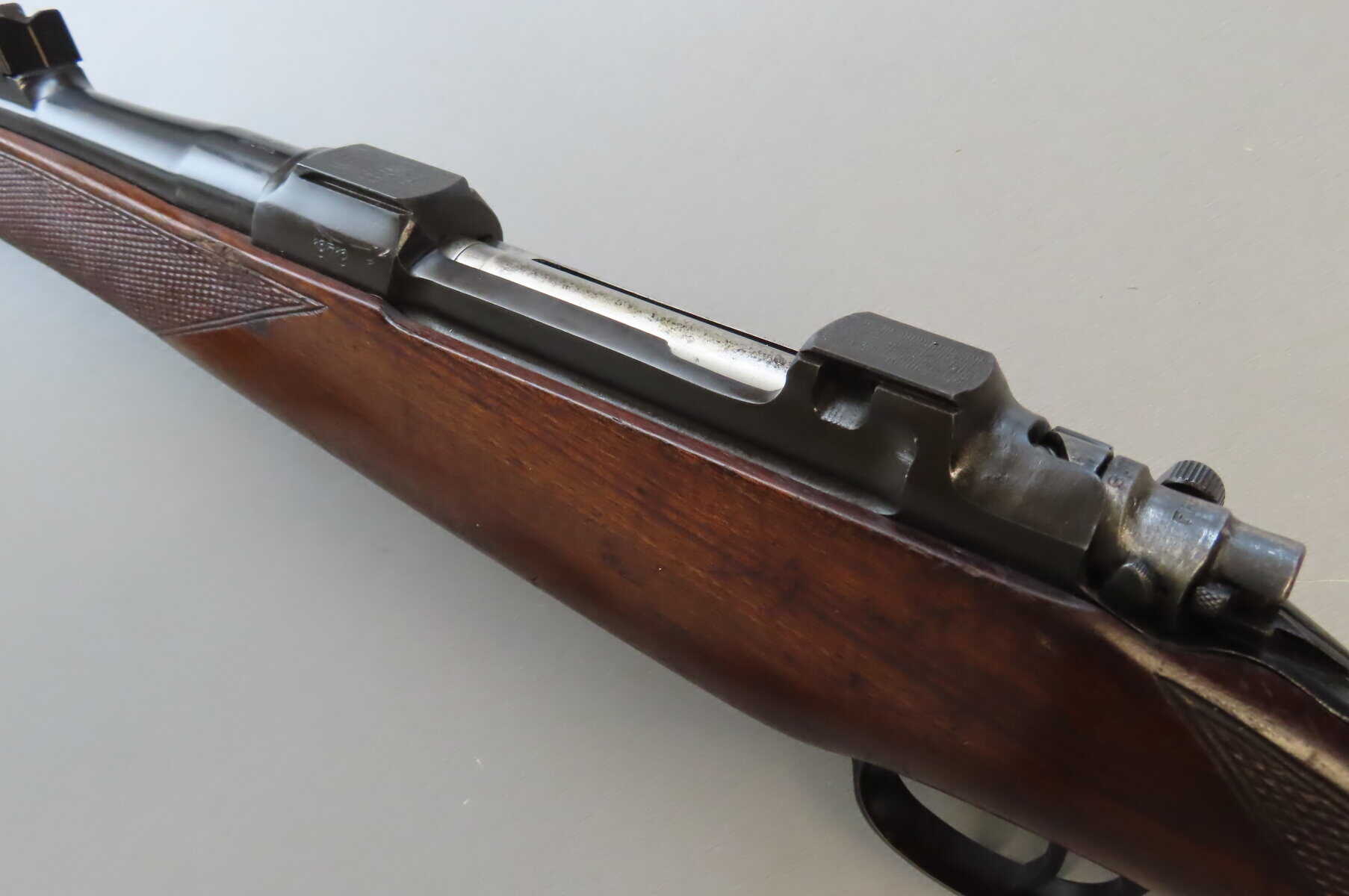 This rifle is in excellent original condition with nice bore. Most original blue remains with some small areas of wear due to normal handling. The wood is excellent with just a few minor handling marks. The recoil pad appears to be a later addition.