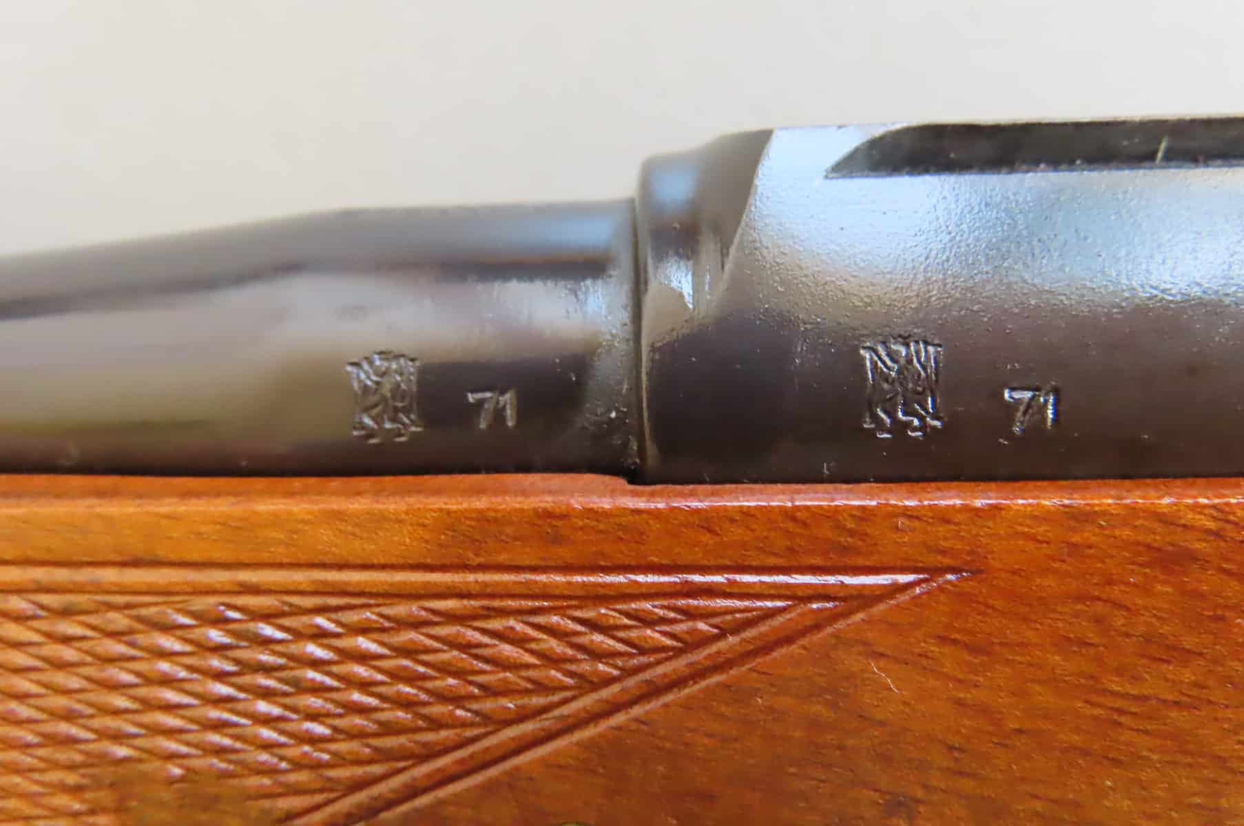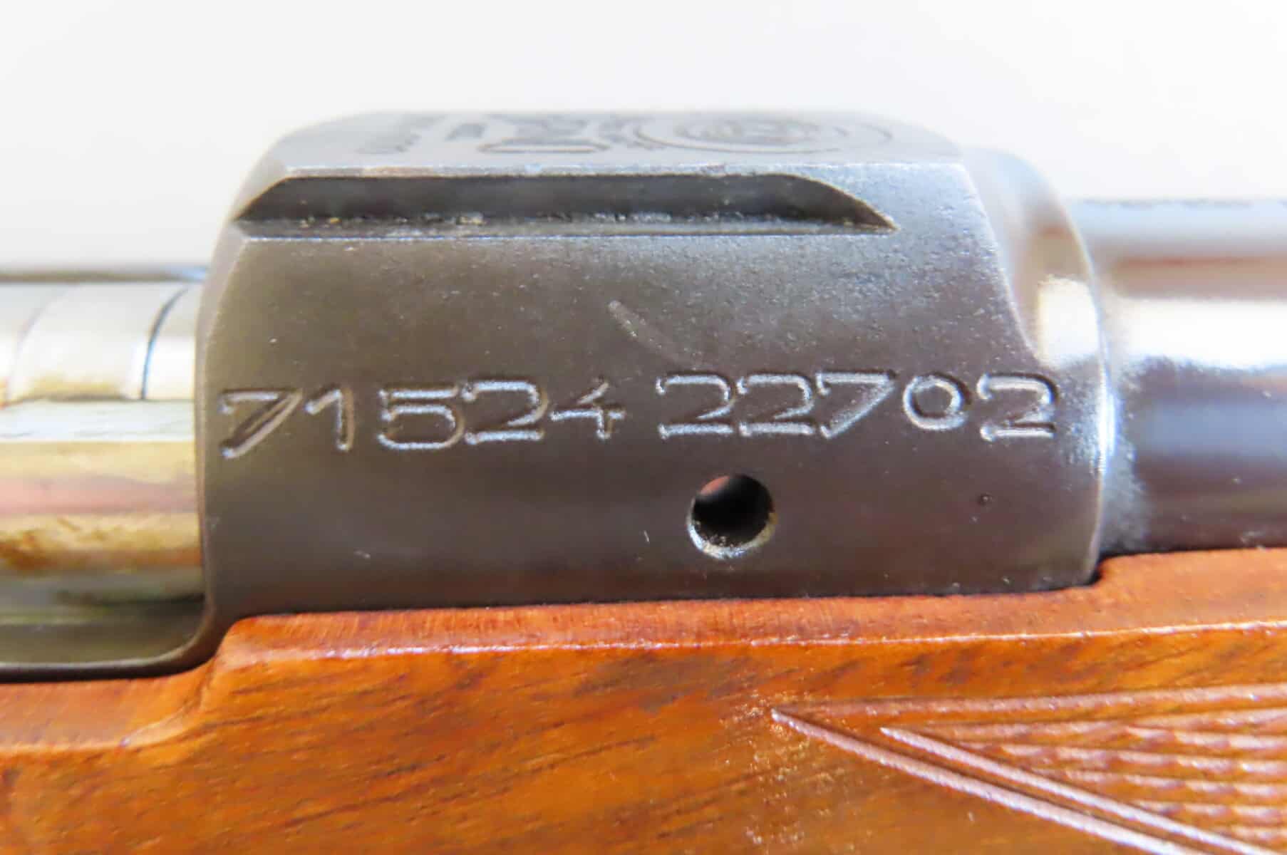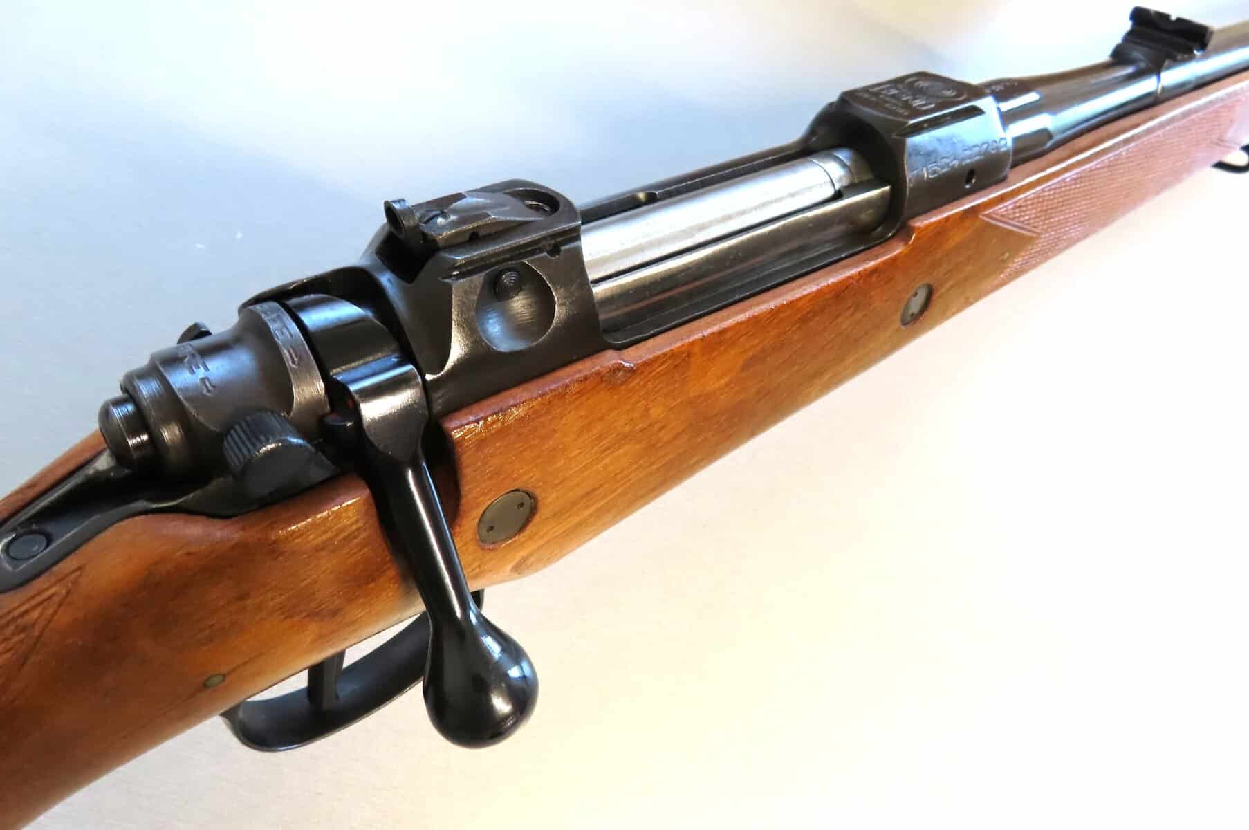 9.3×64 Brenneke BRNO Model ZKK600 manufactured in 1971. It has the traditional “Pop up” peep sight mounted in the rear bridge.
